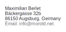 Die durch die Seitenbetreiber erstellten Inhalte und Werke auf diesen Seiten unterliegen dem deutschen Urheberrecht. Die Vervielfältigung, Bearbeitung, Verbreitung und jede Art der Verwertung außerhalb der Grenzen des Urheberrechtes bedürfen der schriftlichen Zustimmung des jeweiligen Autors bzw. Erstellers. Downloads und Kopien dieser Seite sind nur für den privaten, nicht kommerziellen Gebrauch gestattet. Soweit die Inhalte auf dieser Seite nicht vom Betreiber erstellt wurden, werden die Urheberrechte Dritter beachtet. Insbesondere werden Inhalte Dritter als solche gekennzeichnet. Sollten Sie trotzdem auf eine Urheberrechtsverletzung aufmerksam werden, bitten wir um einen entsprechenden Hinweis. Bei Bekanntwerden von Rechtsverletzungen werden wir derartige Inhalte umgehend entfernen.